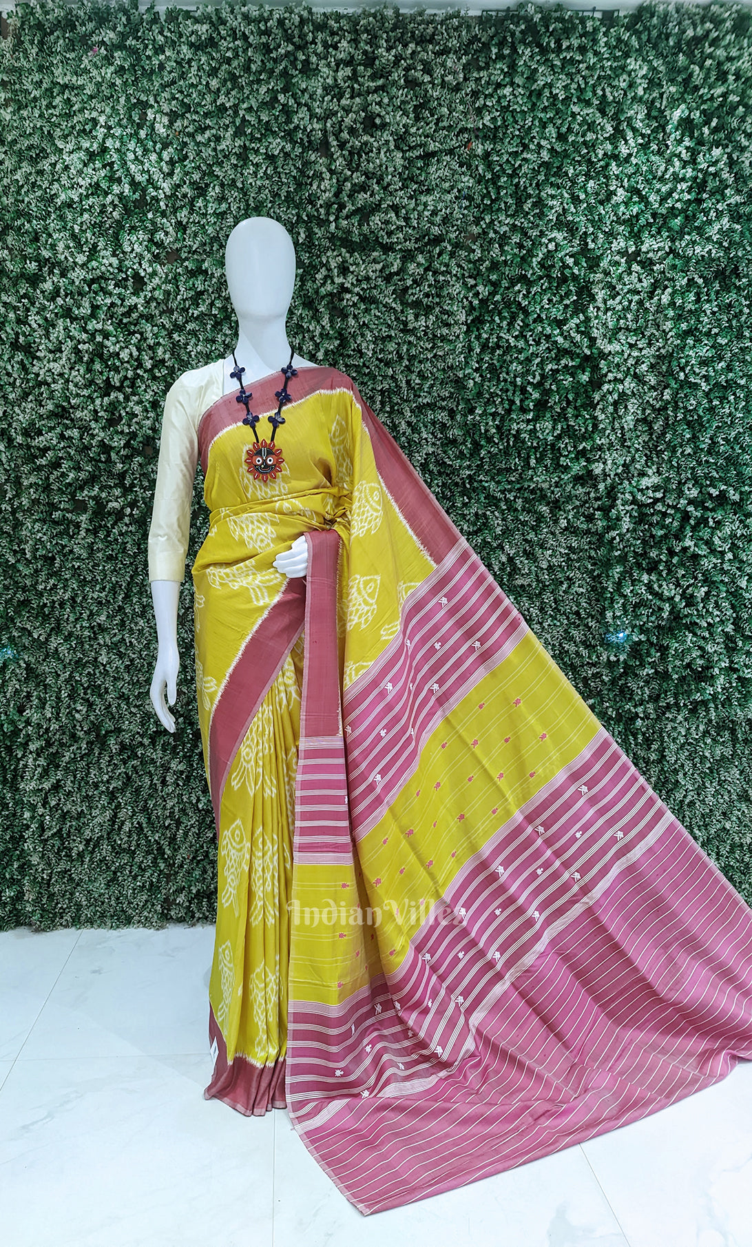 Yellow Magenta Pink Fish Motif Odisha Ikat Contemporary Designer Saree