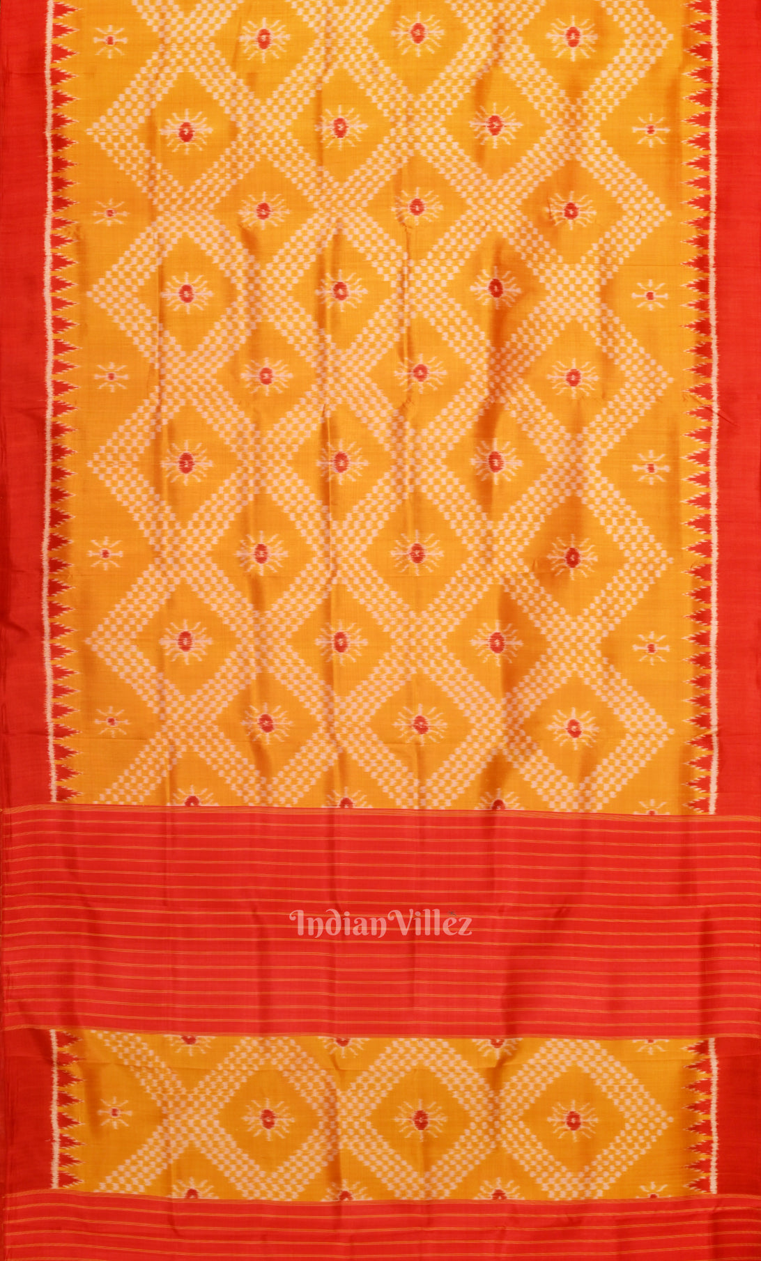 Red Mustard Yellow Odisha Ikat Maniabandha Cotton Saree